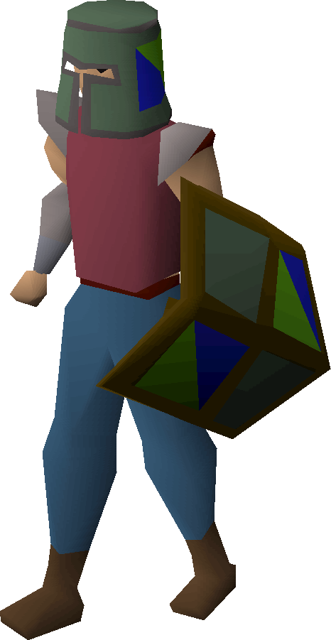 It has stats identical to that of an adamant full helm, the only differences being that the helm is more expensive, has a different appearance, cannot be smithed and can only be obtained through Treasure Trails. There are also four other heraldic helms made of adamant, each having a different heraldic design. There are also heraldic helms in rune and black with the same designs.