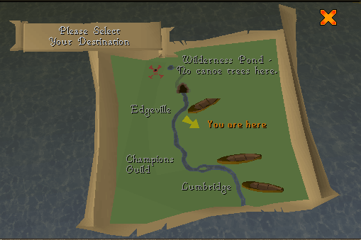 - The Wilderness, just south-east of the Lava Maze. There are no canoe trees here, so it is impossible to use a canoe to sail back down the river.
