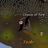 The Chasm of Fire is a dungeon located in the north-west corner of the Shayzien House, housing a variety of demons. All of the demons can only be killed while on a slayer task.