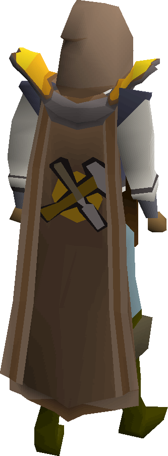 The Crafting cape is an item worn in the cape slot. It is achieved after reaching level 99 in the Crafting skill. After 99 crafting is achieved, the cape can be bought from the Master Crafter inside of the Crafting Guild. Once purchased, the player will also receive a crafting hood. The Crafting cape can be used to access the Crafting Guild without the need to wear a Brown apron.