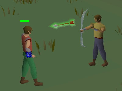 A player attacks a target with a crystal bow.