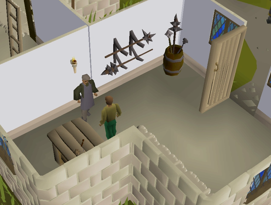 Flynn's Mace Market is a mace shop in Falador. It is located between the Falador General Store and the Hairdresser in the north-western part of the city.