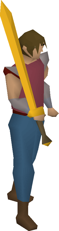 The gilded 2h sword is a gold-plated version of the rune 2h sword. It has the same stats as the rune 2h sword, and only differs in appearance. It requires 40 Attack to wield.