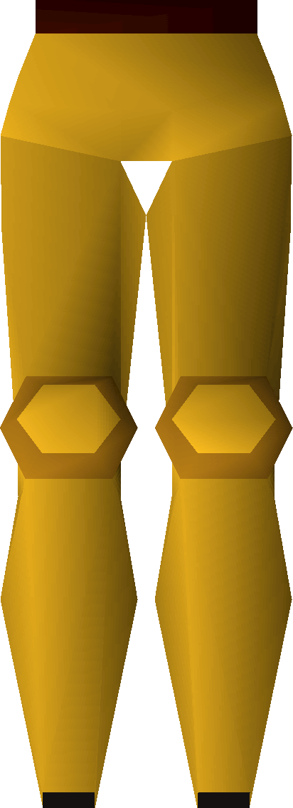 Gilded platelegs are platelegs that can be obtained from level 3 clue scrolls. They are a gold-plated version of rune platelegs, however, this version cannot be made through the Smithing skill. These platelegs also have the same bonus as rune platelegs.