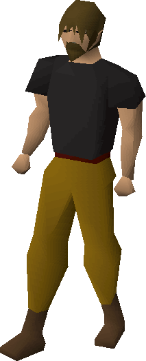 The Gossip starts the King's Ransom quest and is partially involved with Murder Mystery. He does not talk much to players. During King's Ransom, he provides important background history on the Sinclair family, as well as Anna Sinclair. He can be found just around the guard you speak to in Murder Mystery. When you speak to him in Murder Mystery, he will tell you that he saw a poison salesman who came in the village and gave a huge sale on poison to the family.