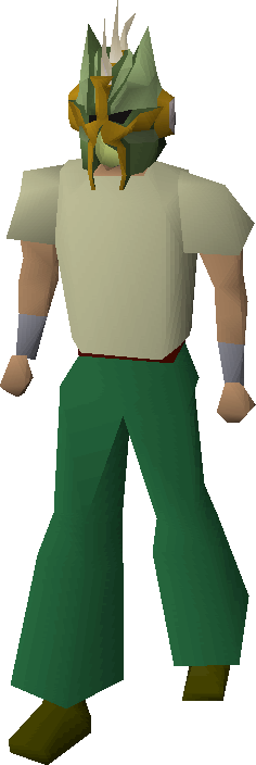 The green slayer helmet is a piece of equipment that is worn in the helmet slot. It is a cosmetic upgrade to the slayer helmet.