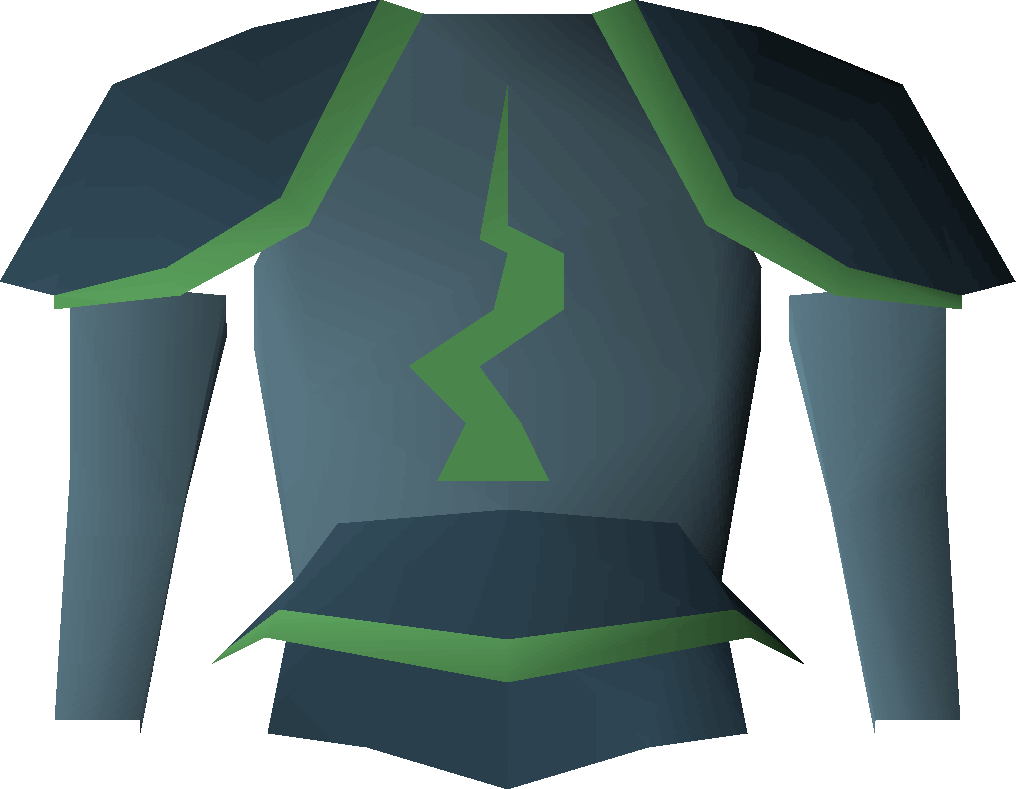 The Guthix platebody is a tinted rune platebody fashioned to praise Guthix. It has the same attack and defence stats as a rune platebody but with a +1 prayer bonus. Nearly identical to the rune platebody, it requires 40 Defence and the completion of the Dragon Slayer quest to wear.