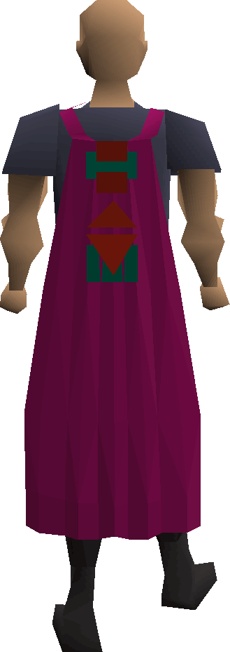 The ham cloak is worn by H.A.M. members. When worn, players are slightly less likely to be kicked out of the H.A.M. Hideout when pickpocketing male and female H.A.M. members. Wearing this will not increase player's chances of success pickpocketing, however.[1]