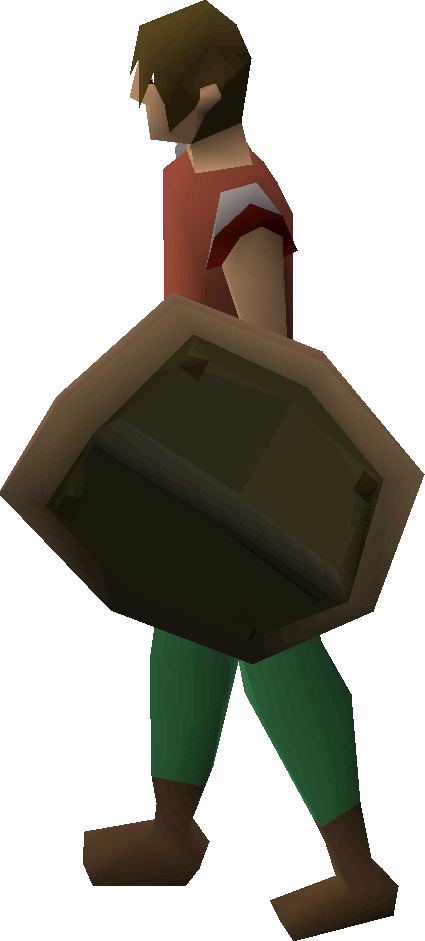 The shield is created by using an oak shield on two pieces of hard leather while having 15 bronze nails and a hammer in the inventory. Creating the shield requires level 41 in Crafting, and grants the player 70 experience.