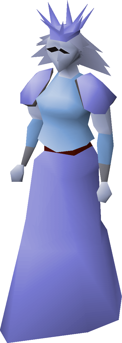 - Go up the ladder, and then go down the other ladder. Continue down the tunnel until it opens up into a large room. Warning for lower levelled players: her lair is a multi-combat zone and she is surrounded by many level 57 ice warriors who will attack you.