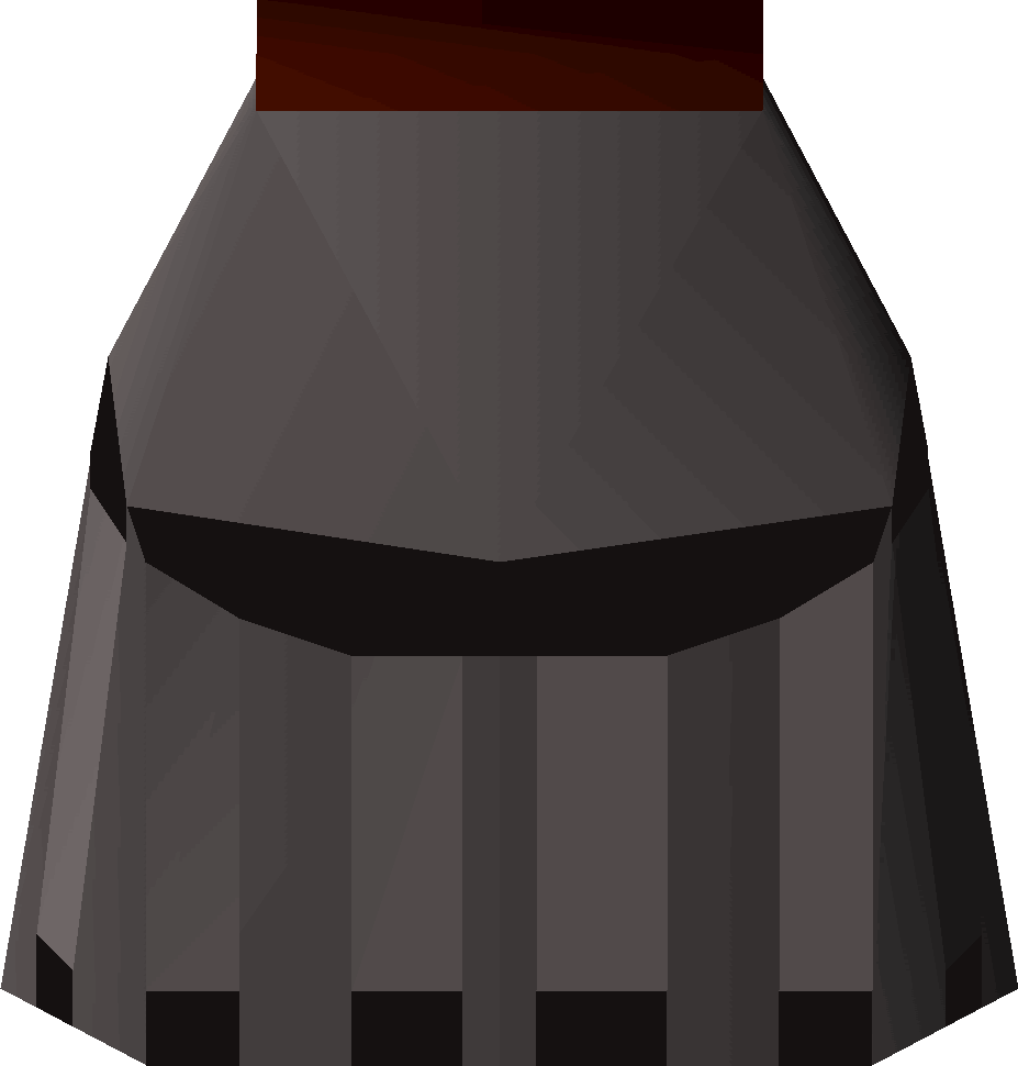 The Iron plateskirt (t) is a trimmed version of the Iron plateskirt. It has the same bonuses as an Iron plateskirt and Iron platelegs and has no requirements to wear. As with the normal Iron plateskirt, it weights 1kg less than the Iron platelegs.