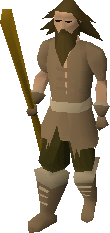 For a particular clue scroll the player must laugh in his tent, whilst equipping fire battlestaff, blue dragonhide chaps and a rune full helm. If players have not yet completed the Mountain Daughter quest, they must bring a rope with them to get over the boulder at the Mountain Camp entrance.
