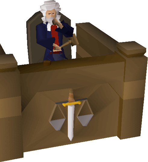 The Judge is a character involved in the King's Ransom quest. The Judge presides over cases held at the Seers' Village Courthouse, which was built following the movement of the Seers' Village Party Room to north-east Falador.