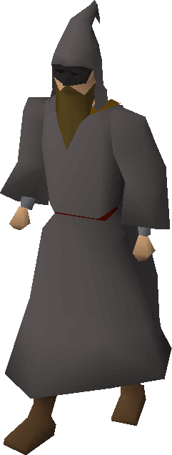 Malignius Mortifer is a necromancer just north of Port Sarim. He cannot be attacked, and has 4 apprentice wizards, one for each of the traditional elements: an air wizard, a water wizard, an earth wizard, and a fire wizard. All of these wizards are level 13. Mortifer will often try to raise the dead, but sometimes fails and creates fungus. He never summons fungus twice in a row. Occasionally, he will summon a skeleton, skeleton mage, zombie or a ghost. They will follow Mortifer if the necromancy is successful. If a player annoys him, he will cast a spell, unblockable by the best Magical protection or even by the Protect from Magic prayer, to temporarily transform the player into a mushroom. He takes part in the Swan Song and A Fairy Tale Part I quests. Mortifer calls himself a 'great practitioner' and a 'master' of the magic arts, he once triumphed over Tanglefoot, and is known to the Dark Wizard Zandar Horfyre. Mortifier also possesses knowledge of the Nature Spirit.