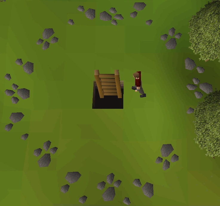 Head west immediately after exiting the monastery. Just south-east of the Gnome Battlefield (just south of the Clock Tower), there is a perfect circle of grey stones. When inside the ring, a ladder will appear.