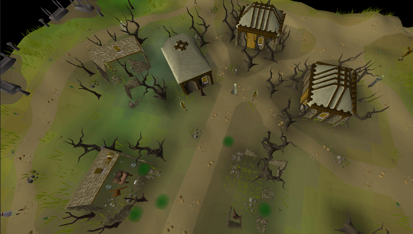 Mort'ton was once a quiet market town that specialised in death. By using the natural caves underneath the town as tombs, Mort'ton became a centre for burials. Unfortunately the foul vapours from the Sanguenesti region cursed the villagers of Mort'ton, turning them into afflicted. Some of the dead interred below began to appear on the surface, known as shades.