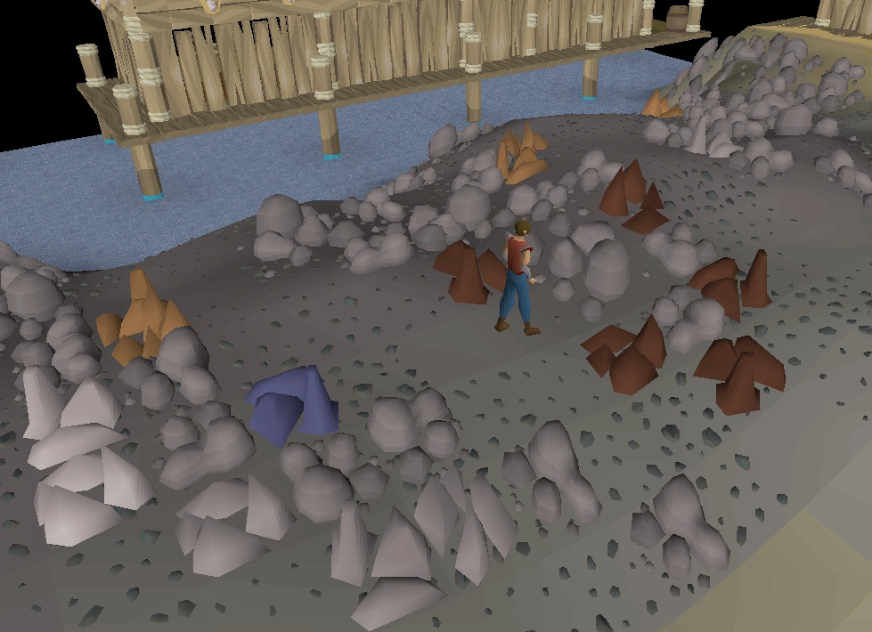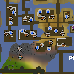The Piscarilius mine is a small mine located south of Piscarilius House in Great Kourend. Five iron rocks, six tin rocks, five copper rocks, two Silver rocks, and one mithril rock can be found here.