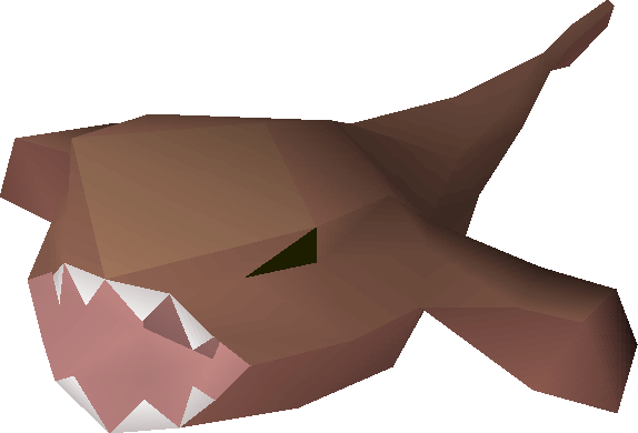 Monkfish give 10 more Fishing experience per catch than sharks, are caught much faster, and can be fished at a lower Fishing level than raw sharks. This makes monks a very efficient way of levelling up. In addition, cooked monkfish are lighter, so players engaging in a lot of running can run longer carrying monkfish versus carrying sharks. The only downsides are that sharks are more valuable and give more Cooking experience (although that does not matter if the raw fish are sold).