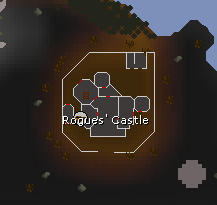 The Rogues' Castle is a fortress located in the deep Wilderness, specifically in levels 52-56. As with all of the land beyond the long fence or border, this area is only accessible to pay-to-play players. It is one of the few places that rogues reside in (they can be fought and pickpocketed). An aggressive boss monster, the Chaos Elemental, can be found lurking around or inside the castle. The song Regal is unlocked near the castle. It is also part of the Curse of the Empty Lord miniquest.