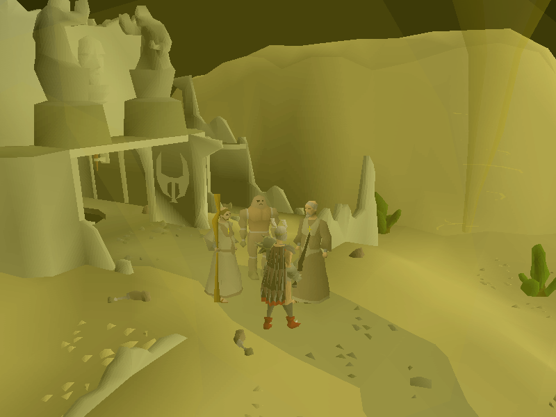 - Wearing ghostly robes from the Desert Treasure quest (top, bottom, and hood).