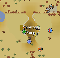 The Shantay Pass is a small area that separates Al Kharid from the Kharidian Desert. Players will need to have 5 coins or have completed the elite desert diary if they wish to enter the desert.