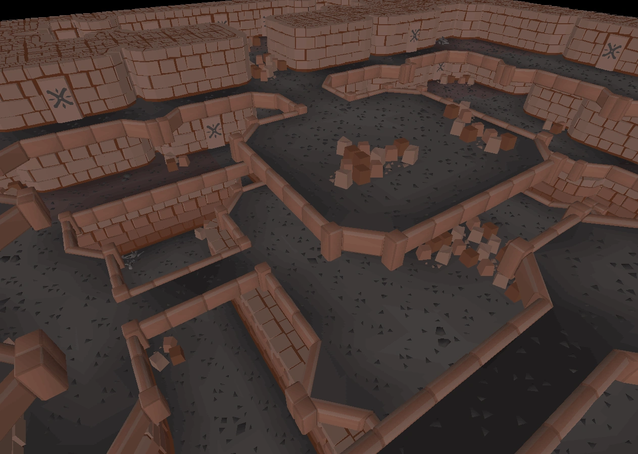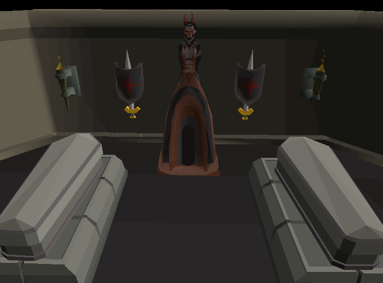 In the lowest level of the crypts, the tomb of Camorra Shayzien, the founder of the Shayzien House, can be found. In addition, a tomb can be found north of hers, which appears to have been opened with blood spilled around it, and has collapsed into the floor below. It should be noted that the bloody tomb has the symbol of Xeric engraved on it.