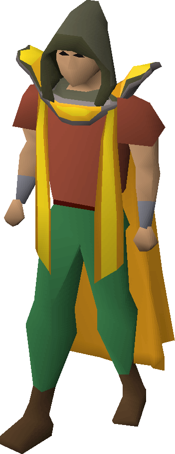 While the hood is bought with the skillcape, it is not needed to perform the emote associated with it; the skillcape is the only essential item. Along with the cape, the hood may be stored in the Cape rack of a player-owned house.