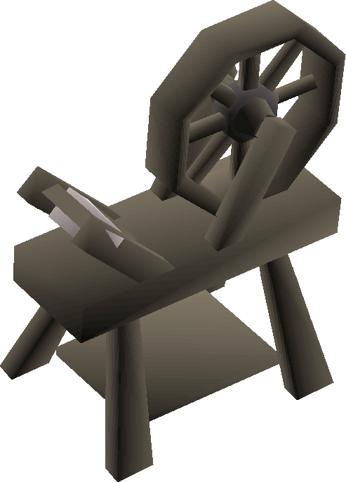 A spinning wheel is a device used with the Crafting skill to spin fibers into strings. Spinning wheels are marked on the map by this symbol: