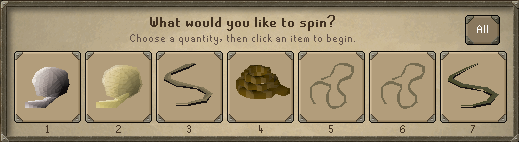 The most commonly used spinning wheel is located in Lumbridge castle on the second level because of its proximity to the third level bank. However, Lumbridge is not close to any flax plants. Some players teleport to the Lletya flax field which is the closest to a bank. After banking a large amount of flax, use the Lumbridge Home Teleport spell to access the spinning wheels.