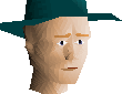 Teal hats can be purchased in Canifis from Barker and his store, Barkers' Haberdashery. The hats come in five different colours; grey, red, yellow, teal, and purple.