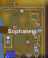 The Spice is Right is a shop in the south-west corner of Sophanem. The shop owner is Embalmer who wanders inside the building behind a his spice stall. Right click and choose trade to open the shop interface. The shop sells three items, one of which is Gnome spice. Embalmer also sells empty pots and three dose antipoisons which can be useful for players that play the nearby minigame Pyramid Plunder. The store never has any curry leaves in stock. The spice stall has the option to be "searched" but when chosen, the player only receives the message "Nothing interesting happens." The shop and its owner are involved in the quest Icthlarin's Little Helper.