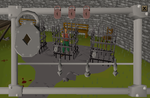 - Pillory - It is possible that your character will be teleported to a pillory in Yanille, Varrock, or Seers' Village, where shapes must be matched in order to pick the lock and return to where your character was thieving. It is possible for players to throw food at the trapped player, although it wont do any damage.