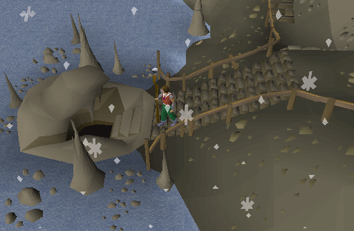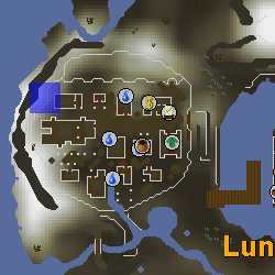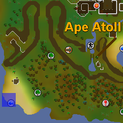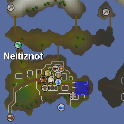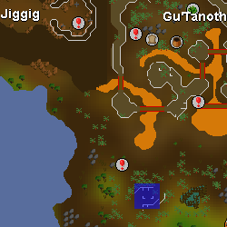 | Small island located north-east of Mos Le'Harmless, accessible through the western staircase located at the north-east corner of the Mos Le'Harmless Caves. Remember to wear a Witchwood icon when traversing the dungeon, as well as bringing a light source for players who haven't lit the fire pit (requires completion of Making Friends with My Arm). It is possible that an Armadylian guard may appear, which means you may have to bring Ranged equipment. | |||