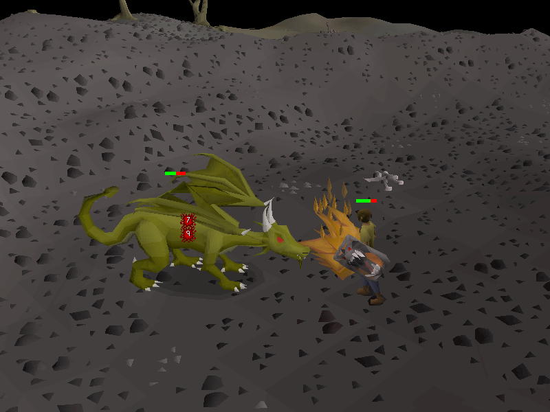 Equip a dragon spear and red d'hide chaps. |