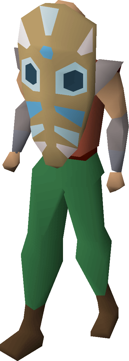 Blue tribal masks are obtained by killing pale-skinned broodoo victims around Tai Bwo Wannai village while playing the Tai Bwo Wannai Cleanup minigame.