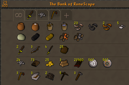 - Smithing items (players can only make bronze daggers)