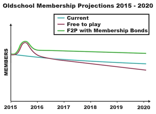 Adding Membership Bonds is not about getting more members, but retaining old ones more effectively. As you can see from the graph we still see the initial increase from a full and permanent F2P service and using information from how bonds have effected RS3 we have been able model the impact on those accounts that lapse out for F2P. We expect a full and permanent F2P service with Membership Bonds to allow us to have more players in 5 years time than we have today and that would be a wonderful achievement for us and the community.