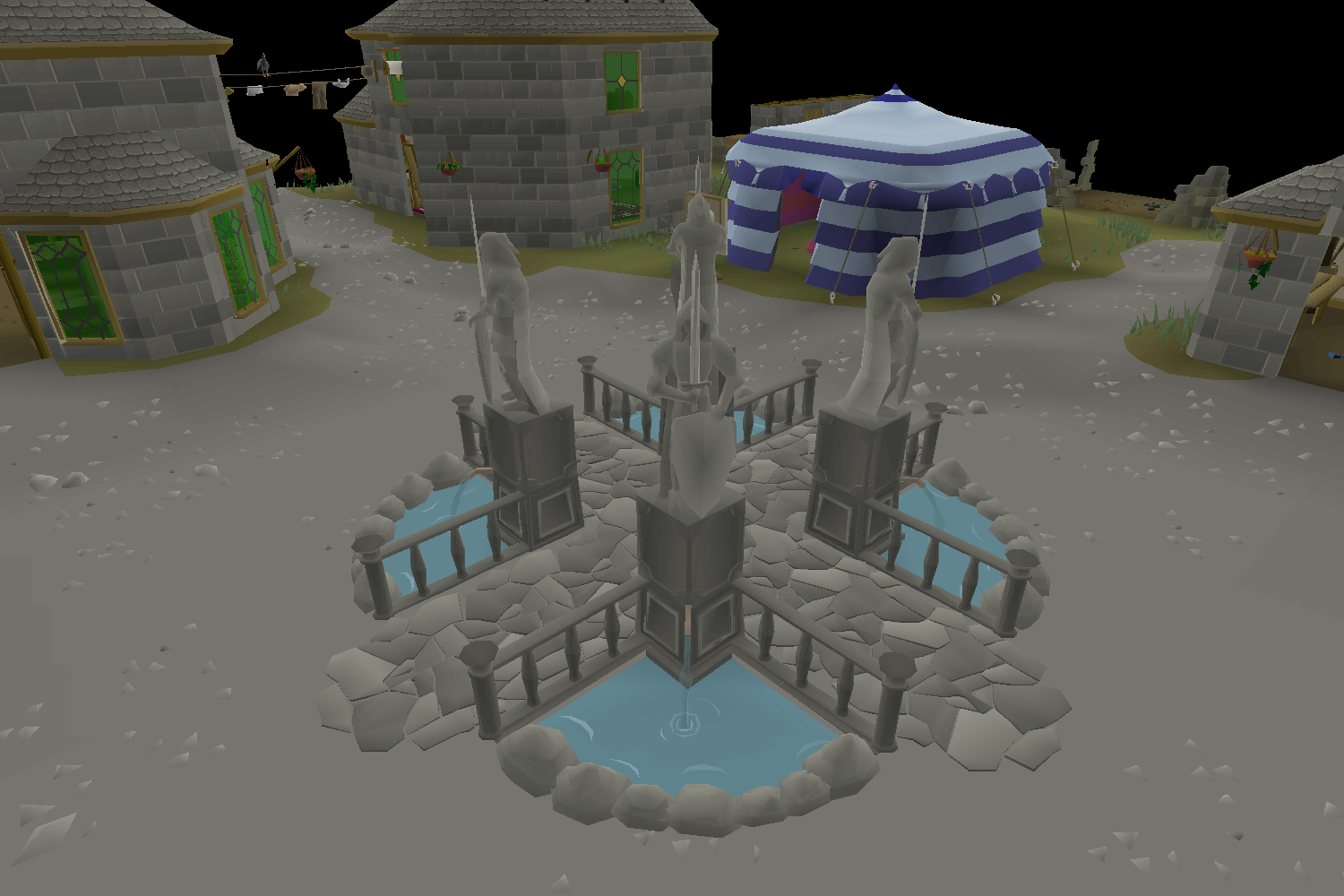 Players can obtain water from sinks in the castle and in fountains outside the castle and near the east bank.