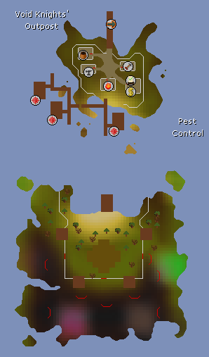 However, the main feature of the island is Pest Control (the bottom island in the picture), a co-operative multi-player Combat minigame. See the Pest Control article for more information. The landers at the south side of the island brings players to the Pest Control island when there are 5-25 players in them.