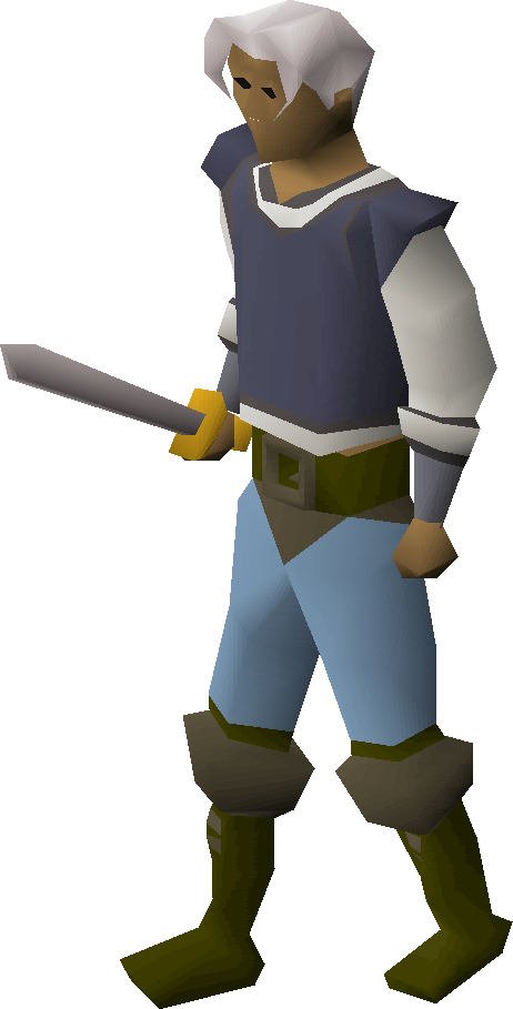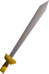 The White sword is a White Knight weapon that requires level 10 Attack and completion of the quest Wanted! to be equipped. This weapon can be purchased in Falador from Sir Vyvin if your White Knight rank is at least Peon.
