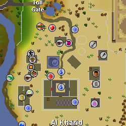 Zeke's Superior Scimitars is located in Al Kharid, just northeast of the bank. It sells scimitars up to mithril.