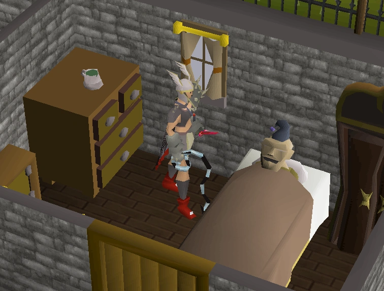cup of tea on top of Sithik's dresser. Go down the ladder and back up to Sithik and you will find that he has turned into an